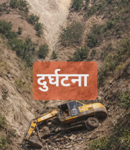 रुकुममा सडक खन्दाखन्दै पल्टियो जेसिबी : सह चालकको मृत्यु, चालक फरार